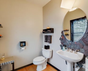 The toilet was the main focal point when walking into the home. With dated design & fixtures, it was time to address layout and bring some flair to the space.