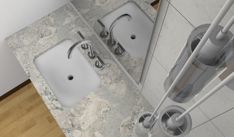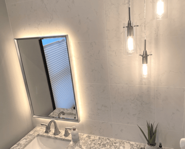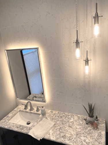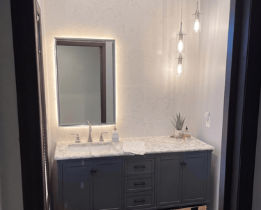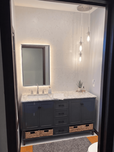 Desiring a functional Powder room that Guests would enjoy, but also a working bathroom for high school girls, we got to work dreaming of a new layout, premium materials, and enough storage to keep all of the day to day items organized and out of site.